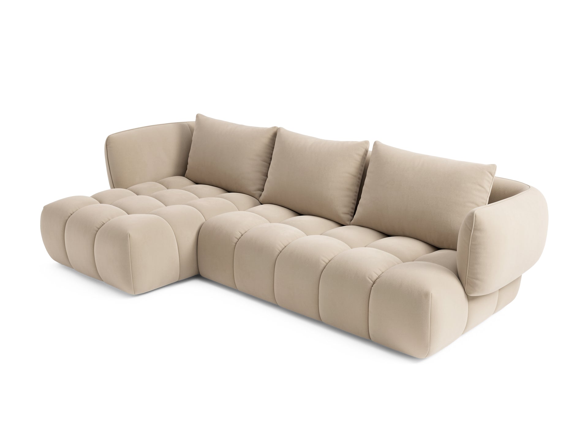 Narożna sofa wypoczynkowa SAVIO – Puente 09, beżowo-szara, wersja prawa – 250 x 168 cm – sofa designerska HR