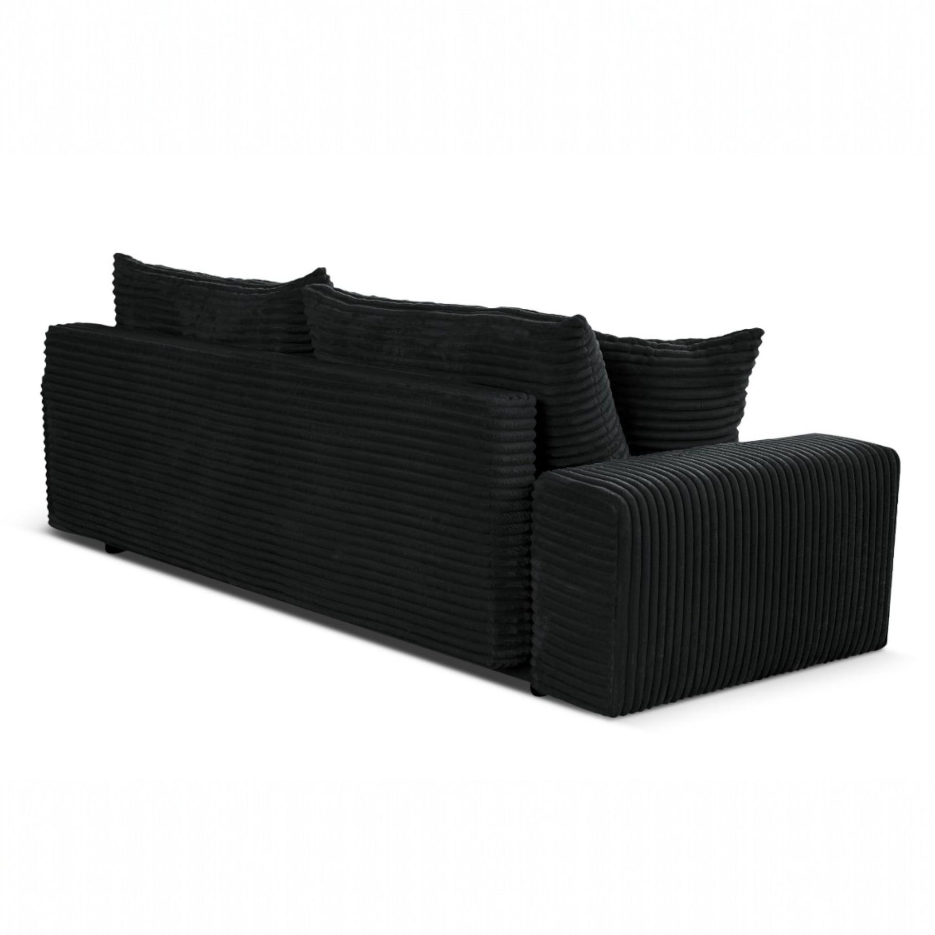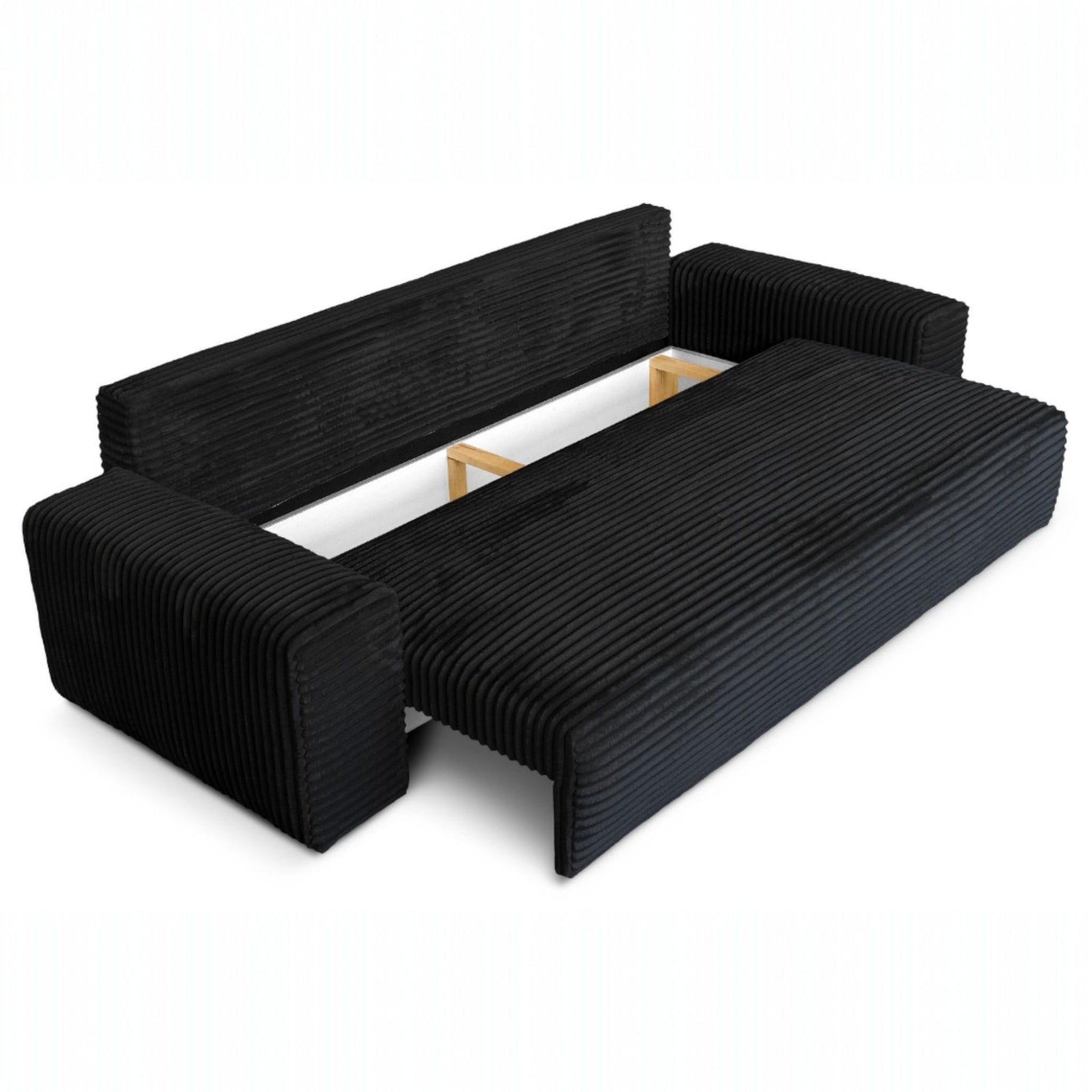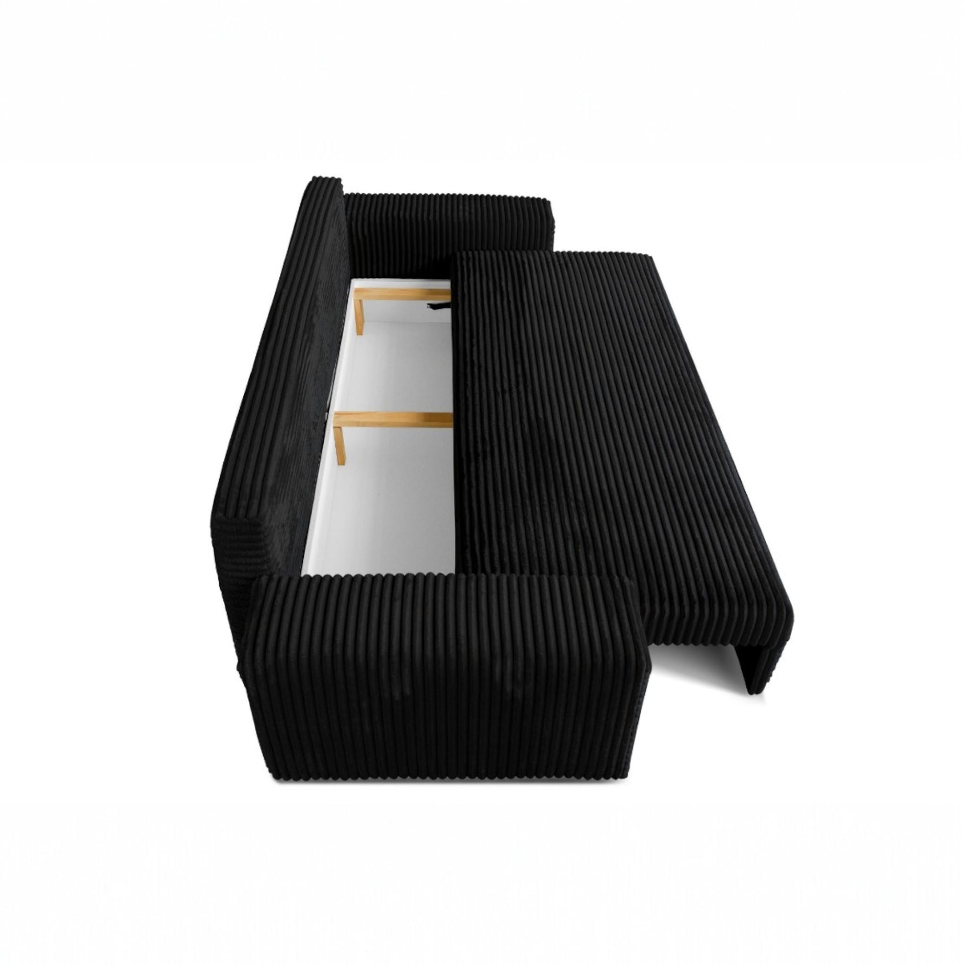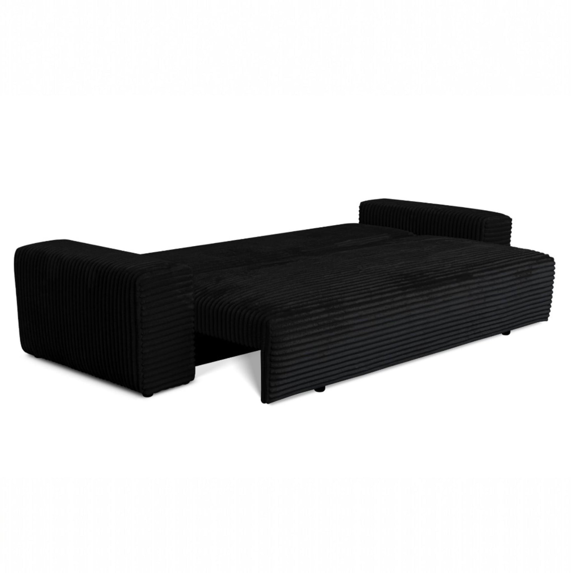 Sofa rozkładana CORDO 3-osobowa z pojemnikiem, czarna tkanina sztruksowa 265 × 105 cm