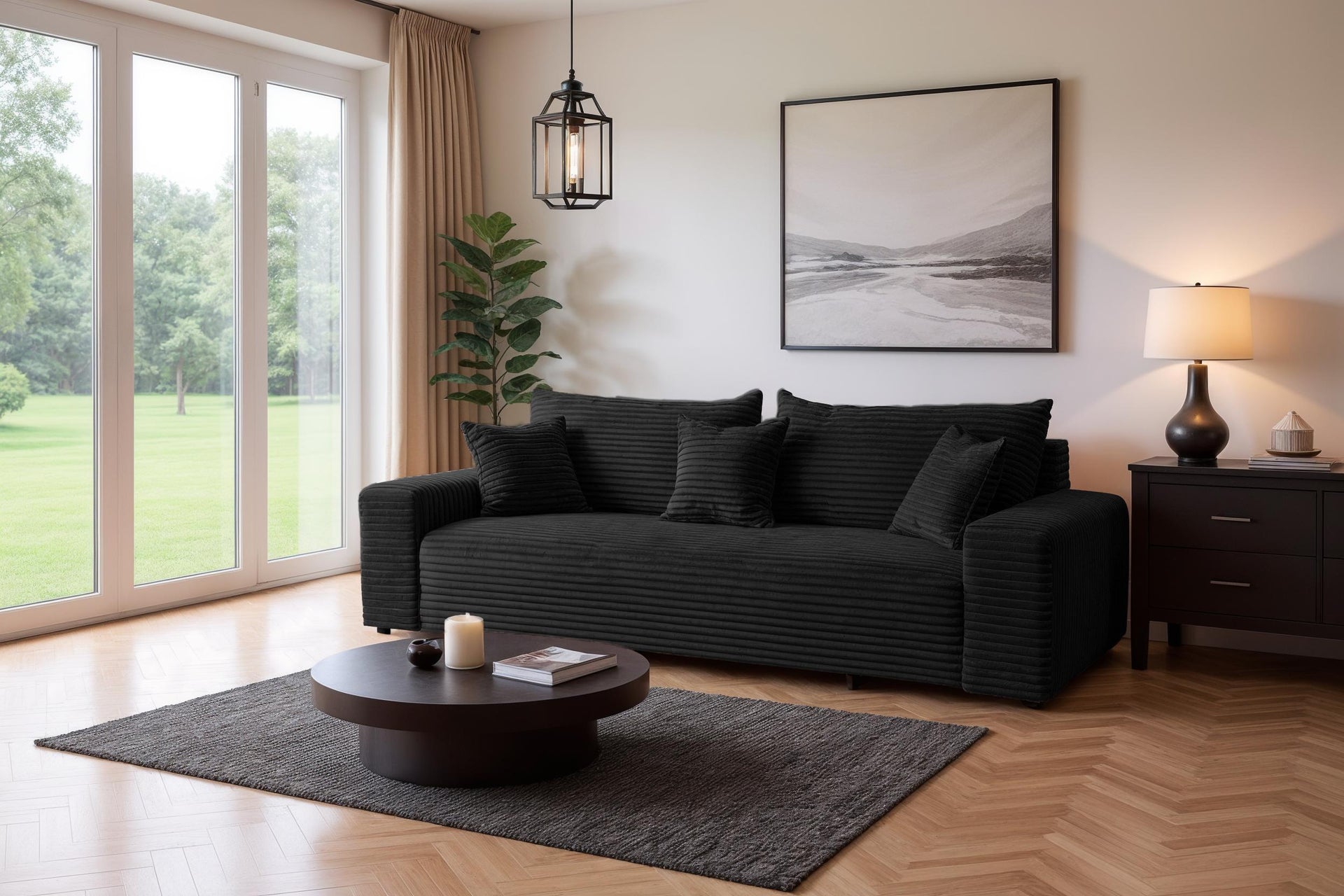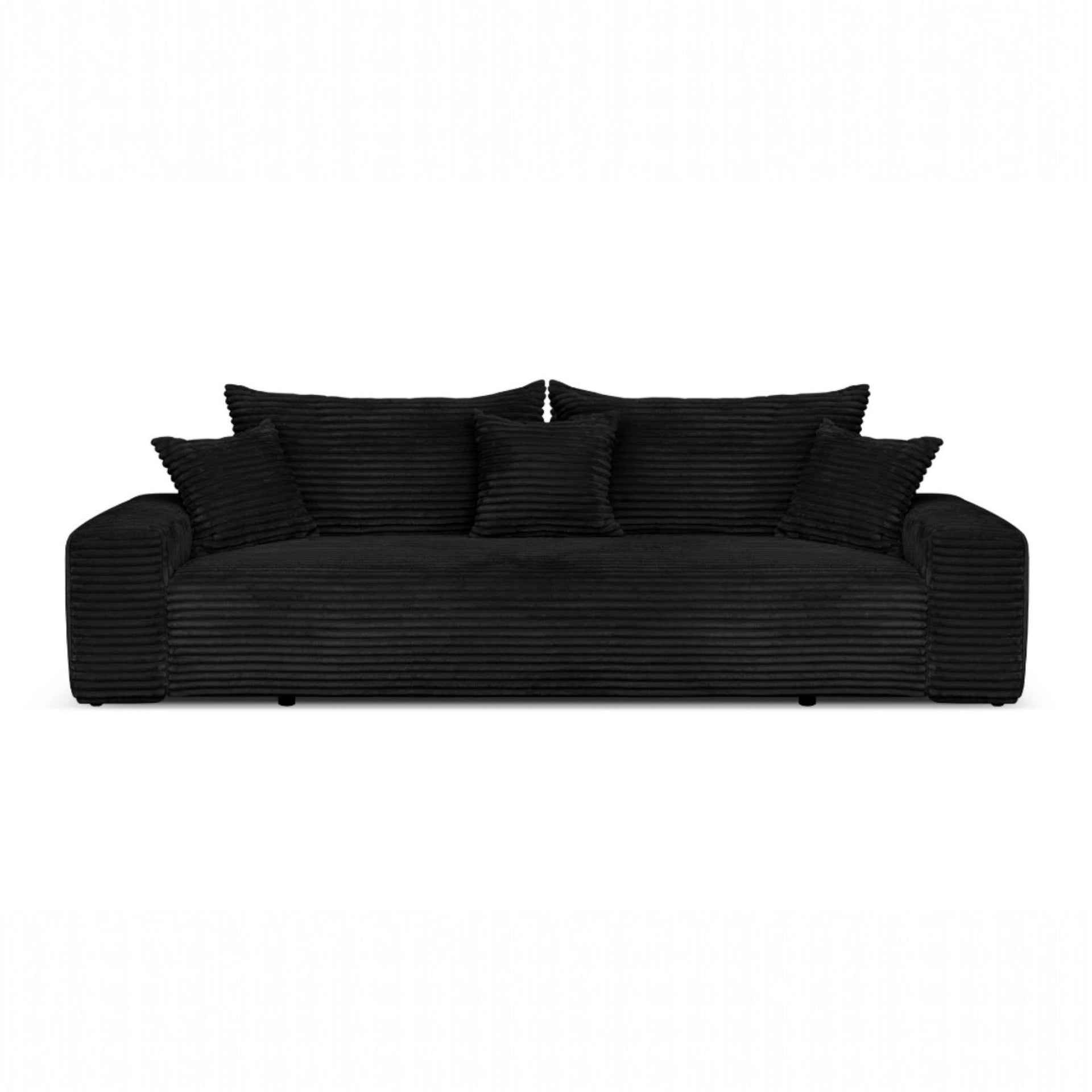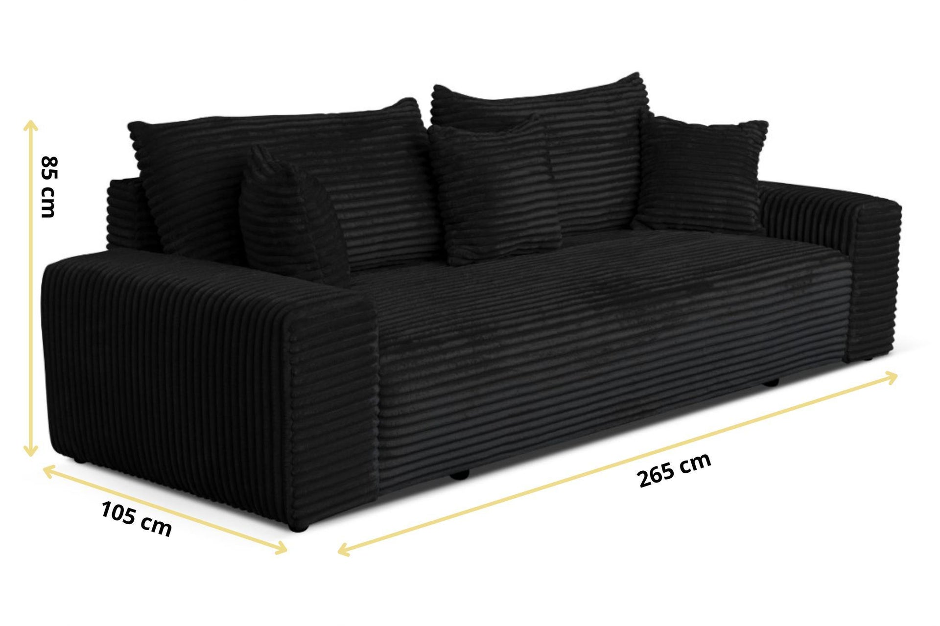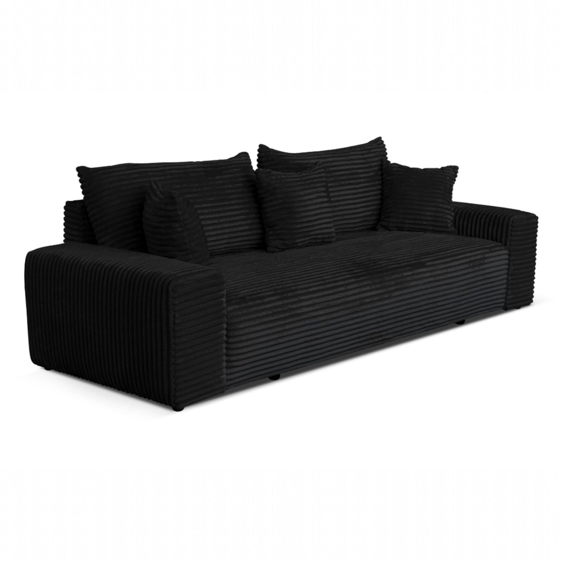 Sofa rozkładana CORDO 3-osobowa z pojemnikiem, czarna tkanina sztruksowa 265 × 105 cm